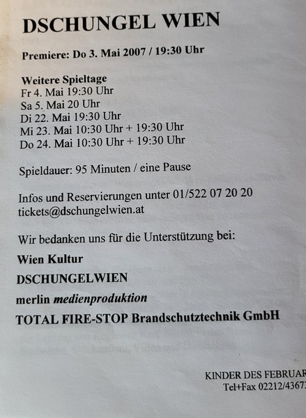 Uraufführung: 3. Mai 2007 im DSCHUNGEL WIEN