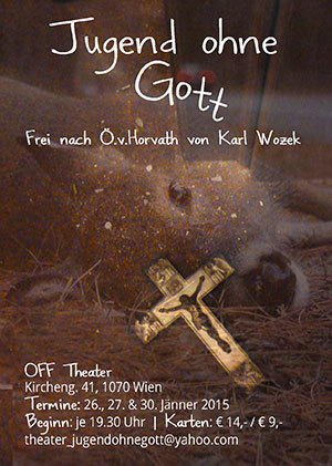 Karl Wozek über seine Arbeit: „Das Stück ist einerseits eine Art radikale Aktualisierung des Romans, anderseits auch dessen Aufarbeitung.“ Er verlegt die Figuren in ein Internat der heutigen Zeit und legt den Roman „Jugend ohne Gott“ von Ödön von Horváth im Rahmen einer Referatsarbeit als Konfrontationsthema dar. Der Handlungsaufbau und die Figurenzeichnungen lassen immer wieder Parallelen zum Roman erkennen, dennoch hat das Stück ein ganz besonderes Eigenleben und entwickelt sich von Anfang an zu einer völlig neuen Geschichte. Aufgrund der sprachlichen Anpassung hält er der Gesellschaft von heute den Spiegel vor und stellt Charaktere auf die Bühne, mit denen man sich auseinandersetzen muss. Die jungen ProtagonistInnen im Stück agieren aus einer Ehrlichkeit heraus, die manchmal schon an Brutalität grenzt. Dass die Liebe, besser gesagt, die Sehnsucht nach Liebe, der Antrieb ihres Handelns ist, würden sie, wäre es ihnen bewusst, nie zugeben. „Jugend ohne Gott“ schafft eine Atmosphäre, in welcher das Gute und das Böse oftmals Hand in Hand gehen. Was ist richtig? Was falsch? Wer kennt die Wahrheit?
