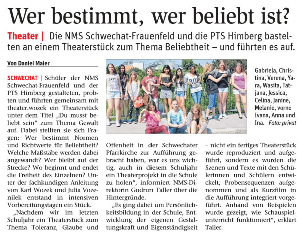 Diesen und ähnlichen Fragen gehen die Schülerinnen und Schüler der PTS Himberg bei Wien und der NMS Schwechat gemeinsam mit dem theater.wozek auf den Grund.