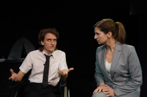 Ob zärtliche Annäherungen, Konflikte, Gewalt oder Passagen in denen an den Kern des Stücks geht - das Diskutieren, Überlegen, Philosophieren - das Ensemble (Marion Rottenhofer, Felicitas Lukas,