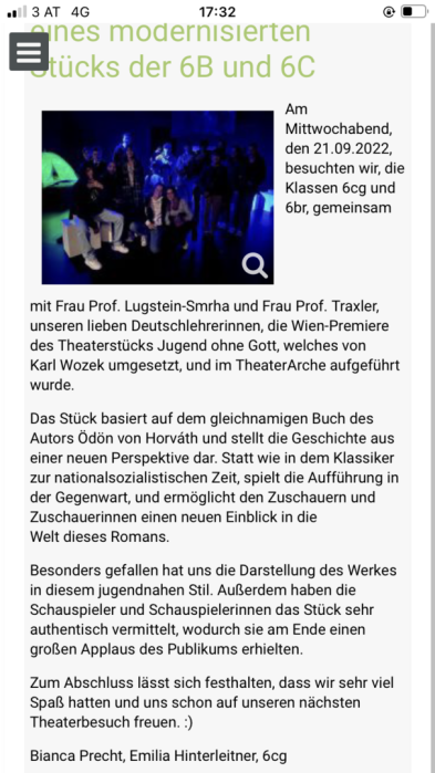 Das gelang auch der Version vor 15 Jahren – bei der ebenfalls Marion Rottenhofer die Lehrerin spielte. Alle anderen eroberten in der Folge die verschiedensten Theaterbühnen, bis hinauf zum Burgtheater etwa – Sandra Selimović in „Die Ärztin“ – Interview mit ihr, in dem sie sich sehr gern an ihre Anfänge im Theater Wozek erinnert sind unten verlinkt.