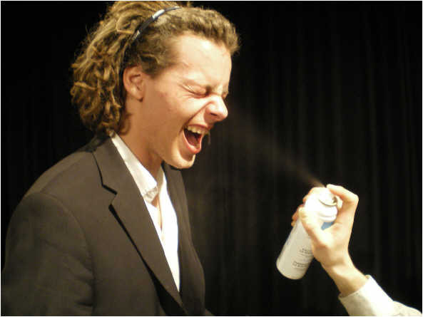 heftigen Auseinandersetzungen und Meinungsverschiedenheiten, jeder will das Referat anders gestalten, entscheiden sie ihre Arbeit als Rock-Punk-HipHop-Show zu präsentieren.