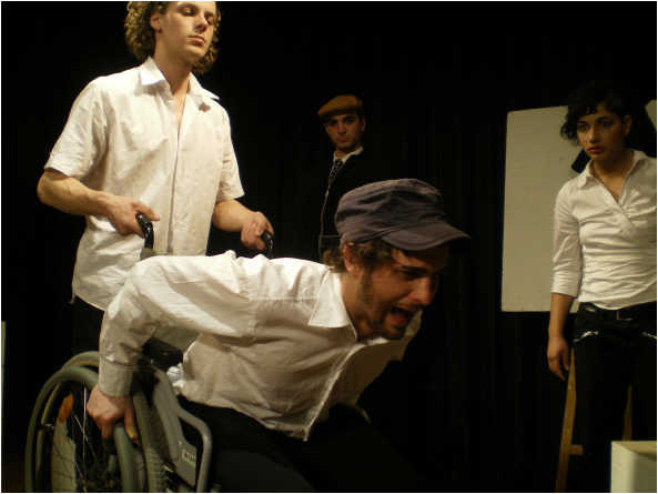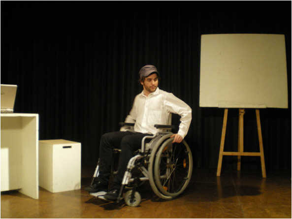 Und hier erlaub ich mir – obwohl neues Ensemble, ein Drittel neu und aktualisiert ein wenig aus meiner seinerzeitigen Stückbesprechung (damals noch im Kinder-KURIER) zu zitieren: „Faszinierend wie diese Rahmenhandlung schon mit einem Gutteil des Personals aus Horváths Stück hantiert. Ausgrenzung – neben dem Rollstuhlfahrer vor allem der Migrantin Eva – sind ebenfalls nichts anderes als inspiriert vom Rassismus in einem der Aufsätze, die der Lehrer im Originalstück lesen muss. …