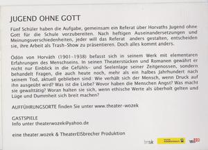 Jugend ohne Gott ist eine Co-Produktion mit TheaterEISbrecher und wird von der Stadt Wien, dem Bundesministerium und dem Land Niederösterreich unterstützt.