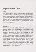 Ödön von Horvath, Referat pfauh öd. So die erste Reaktion der fünf SchülerInnen, als sie mit der Aufgabe konfrontiert sind, zu diesem Autor und insbesondere zu seinem Stück "Jugend ohne Gott" ein