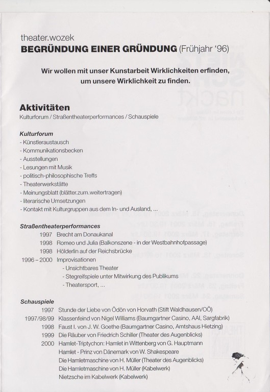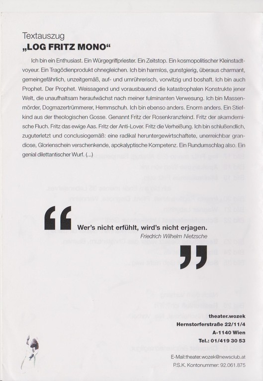 [...] Das theater.wozek ist, wie soll man es anders sagen, ein Phänomen. Geheiligter Wozek, steh uns bei!